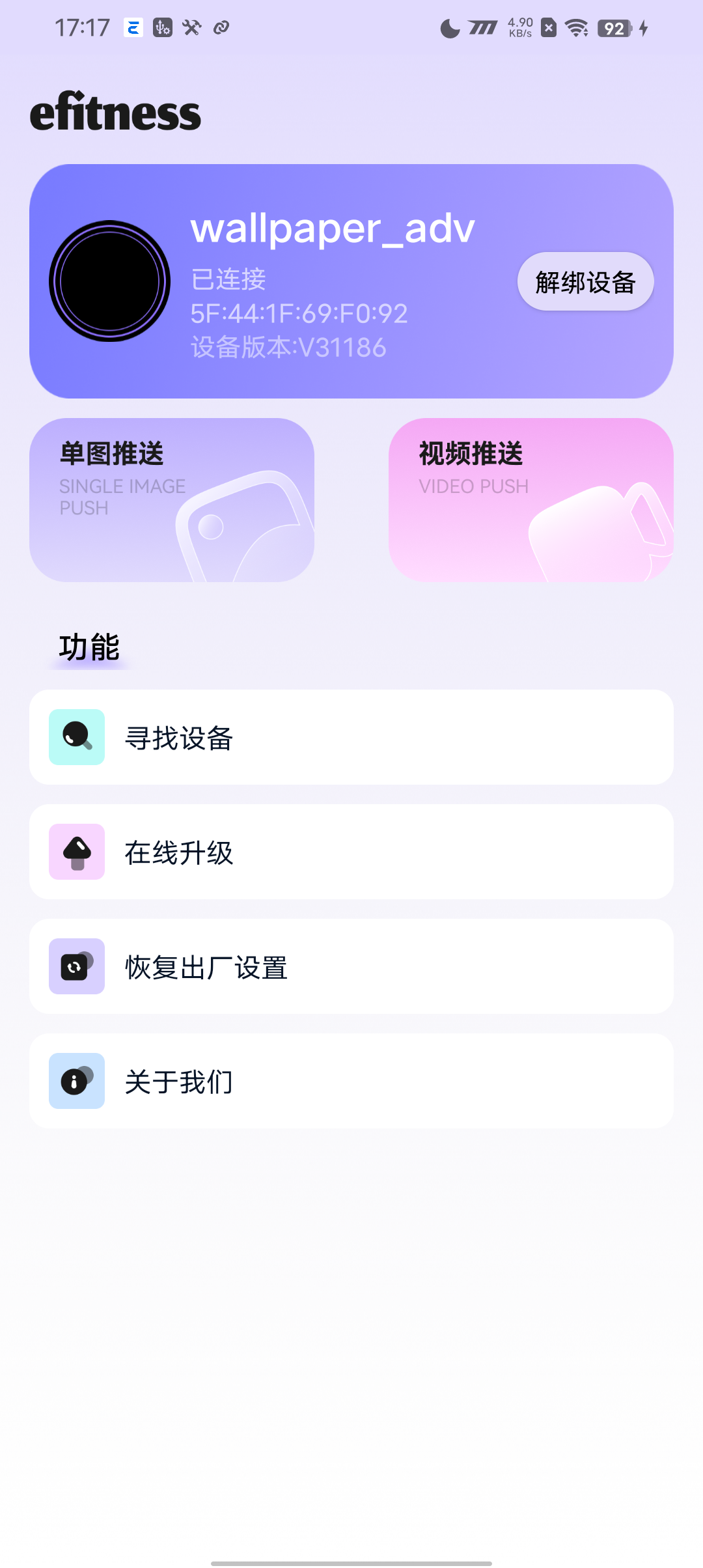 eFitness具备便捷的设备连接功能,只需简单操作,就能实现数据传输。它支持上传静态、gif、3S短视频,还可进行应用推送,让你不错过手机中任何一条信息。此外它还可以通过寻找设备功能帮你找到不在身边的蓝牙电子吧唧。 无论是爱豆的美颜瞬间、日常的生活碎片,还是宠物的可爱大头照,都能一键上传至蓝牙电子吧唧,让其成为专属的流动情感日记。 蓝牙电子吧唧 APP 主要面向二次元爱好者、追星族以及追求潮流的年轻群体,更能凭借电子吧唧 APP 打造独特穿搭,无论是装饰在衣服、包包上,还是作为配饰别在衣领,都能轻松打造 “痛包” 等潮流造型,展现个性风格。